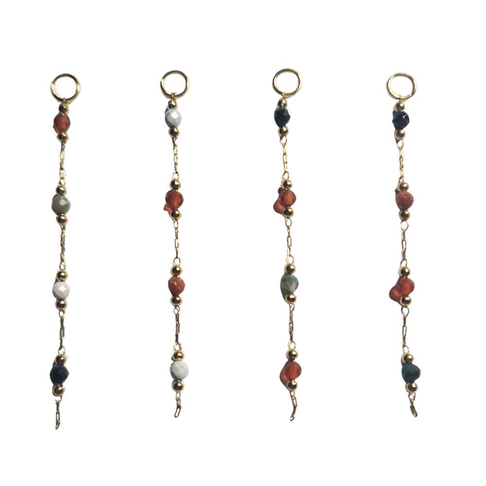 Chaîne maille en inox doré hypoallergénique et pierres teintes brique / blanc / noir / vert